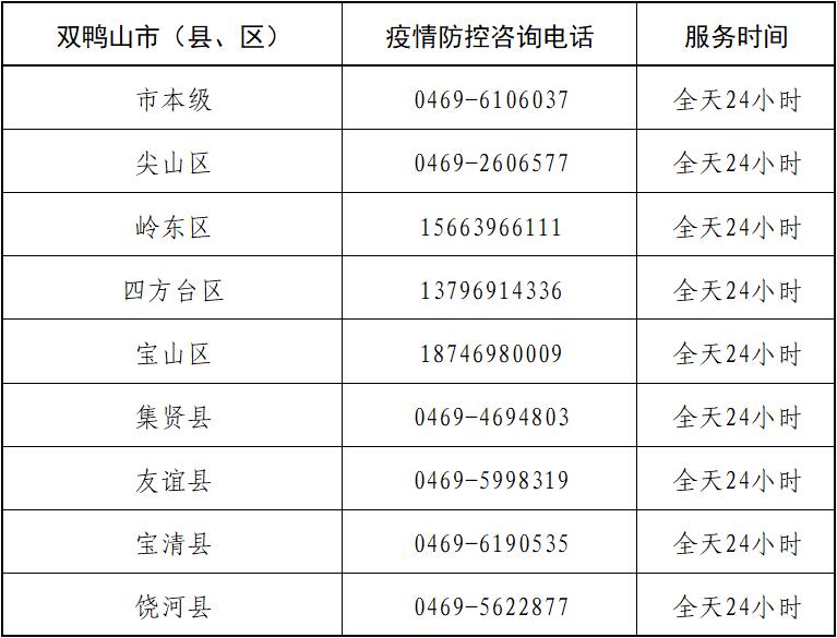 雙鴨山市新冠疫情防控指揮部咨詢電話:0469-6106037;