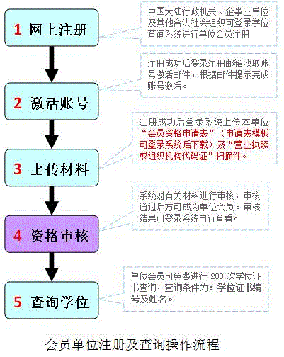 中國大陸行政機(jī)關(guān)、企事業(yè)單位及其他合法社會(huì)組織同意《學(xué)位證書查詢系統(tǒng)會(huì)員單位注冊(cè)條款》,并在使用過程中遵守本協(xié)議所述之條款,自行進(jìn)行會(huì)員單位注冊(cè),注冊(cè)成功后登錄系統(tǒng)上傳本單位營業(yè)執(zhí)照或組織機(jī)構(gòu)代碼證掃描件,通過審核后,即可正式成為我們的會(huì)員單位。