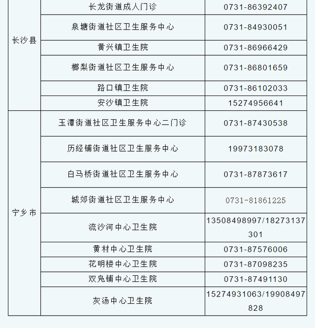 3、長沙縣新冠病毒疫苗接種機(jī)構(gòu)聯(lián)系電話