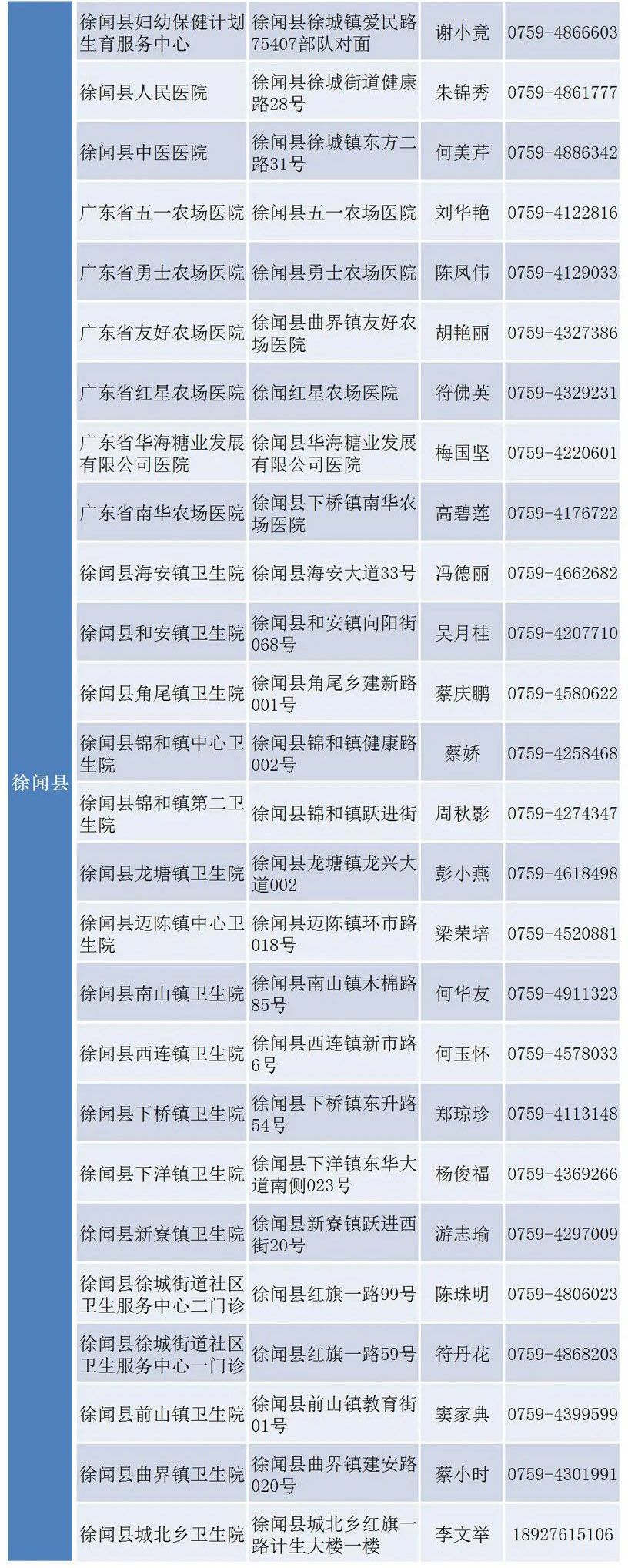 按照國(guó)家、省、市相關(guān)工作要求,徐聞縣已陸續(xù)開(kāi)展對(duì)重點(diǎn)人群和其他人群新冠病毒疫苗接種工作。近日,徐聞縣衛(wèi)健委公布我縣新冠病毒疫苗預(yù)防接種點(diǎn)。目前,徐聞縣共有26家機(jī)構(gòu)可供市民預(yù)約接種新冠病毒疫苗。詳細(xì)單位名單、地址、接種時(shí)間和預(yù)約電話等信息看這里↓↓↓