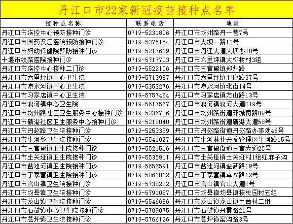 為鞏固疫情防控成果,建立人群免疫屏障,確保人民群眾生命健康安全,根據上級新冠疫苗接種工作整體部署,十堰市丹江口市全民免費接種新冠疫苗工作已全面展開;即日起,丹江口市轄區(qū)內18歲以上居民(含60歲以上)身體狀況符合接種要求的均需免費接種新冠病毒疫苗,請您與所在單位或社區(qū)聯系疫苗接種相關事宜。丹江口市市民預約接種新冠病毒疫苗單位名單、地址、接種時間和預約電話等相關信息看這里↓↓↓