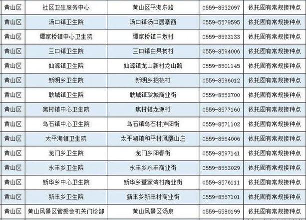 一、黃山市黃山區(qū)新冠病毒疫苗接種點(diǎn)信息