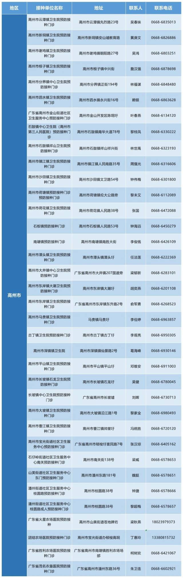 接種地址:高州市新峒鎮(zhèn)安山墟教育路