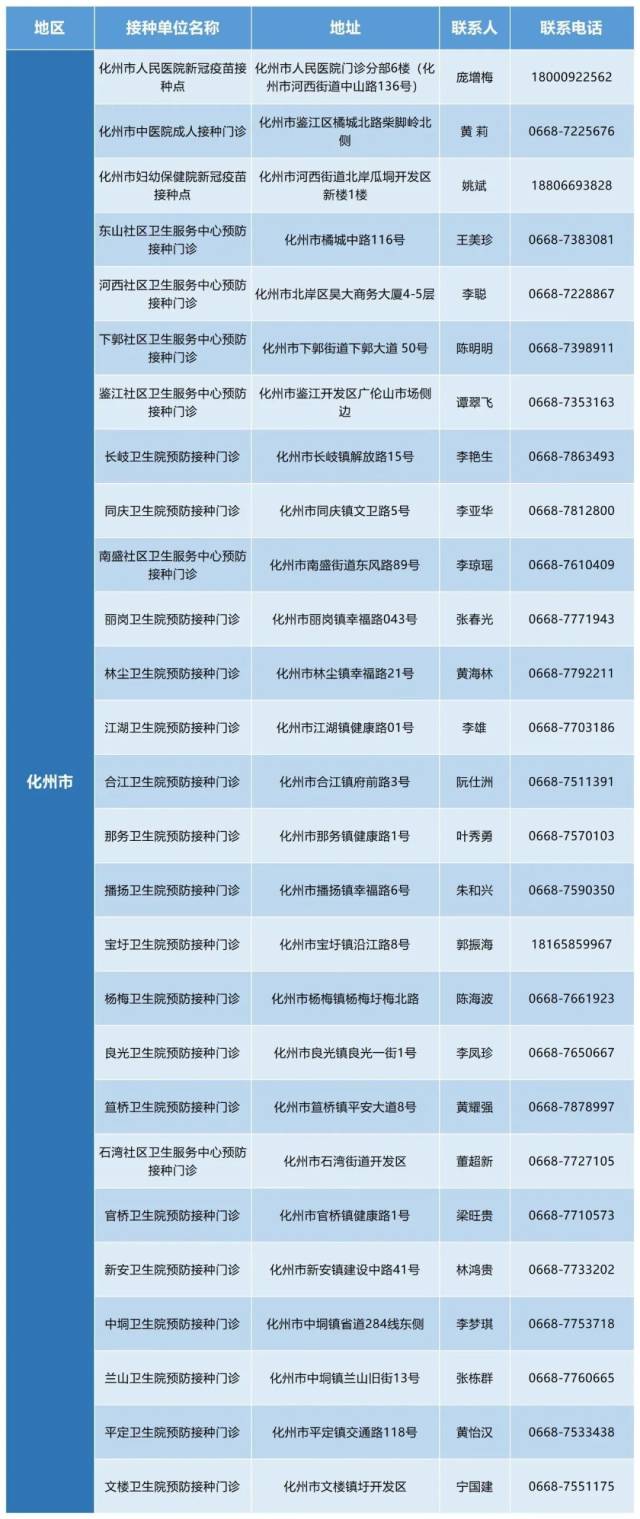 茂名市化州市新冠病毒疫苗接種點(diǎn)信息