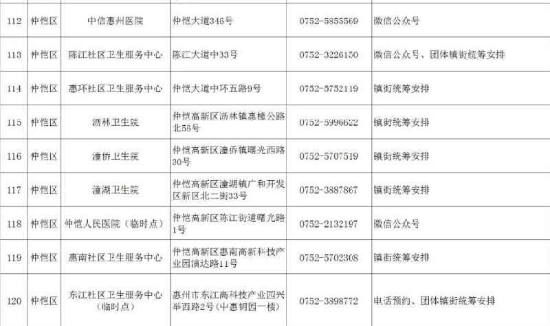 惠州市仲愷高新區(qū)新冠病毒疫苗接種點(diǎn)信息