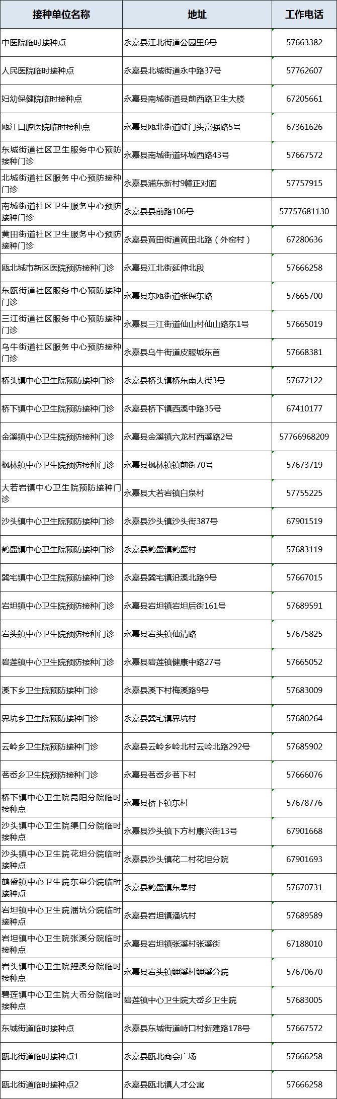 接種地址:永嘉縣東甌街道張保東路