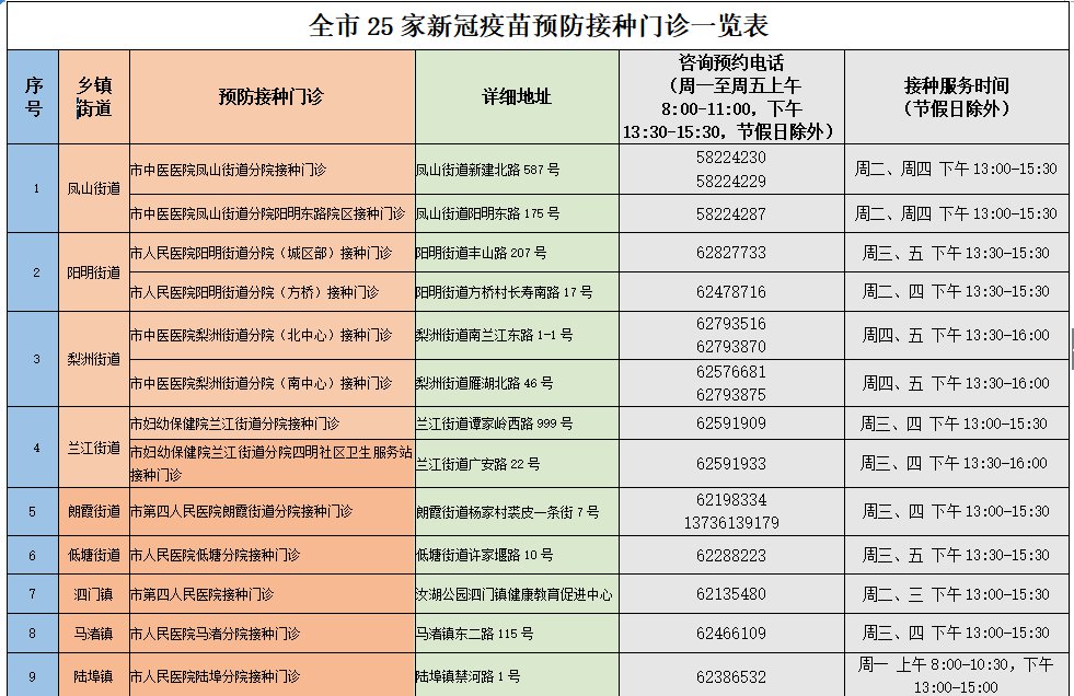 接種地址:余姚市梨洲街道南蘭江東路1-1號
