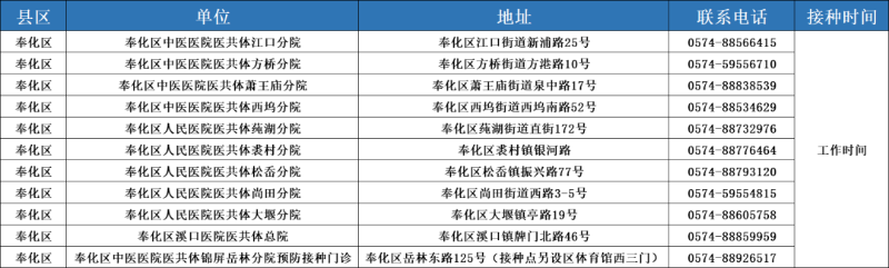 接種地址:寧波市奉化區(qū)岳林東路125號;