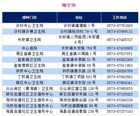 接種地址:浙江省嘉興市海寧市海洲街道聯(lián)合路326號