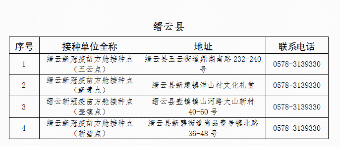 接種地址:麗水市縉云縣五云街道鼎湖南路232-240號