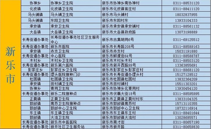 1、石家莊市新樂(lè)市承安衛(wèi)生院疫苗接種門(mén)診