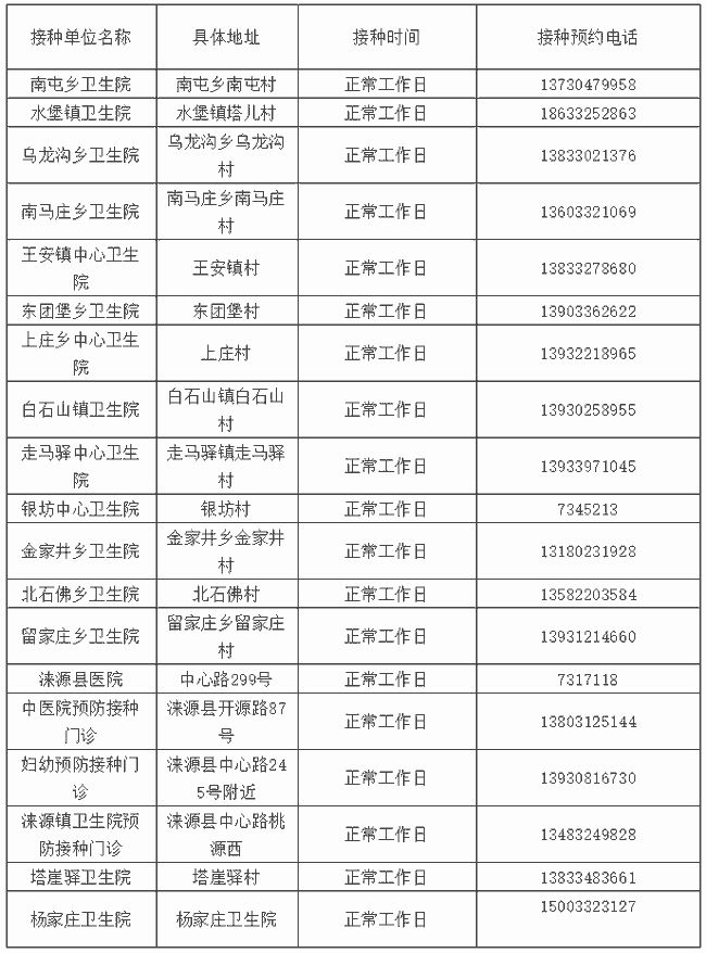 1、保定市淶源縣醫(yī)院疫苗接種門診