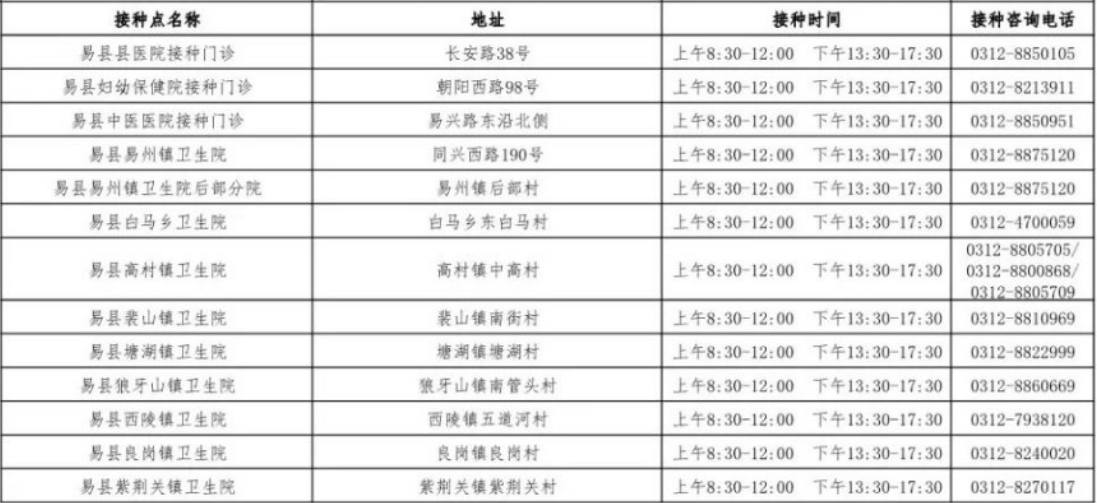 接種地址:保定市易縣紫荊關(guān)鎮(zhèn)紫荊關(guān)村