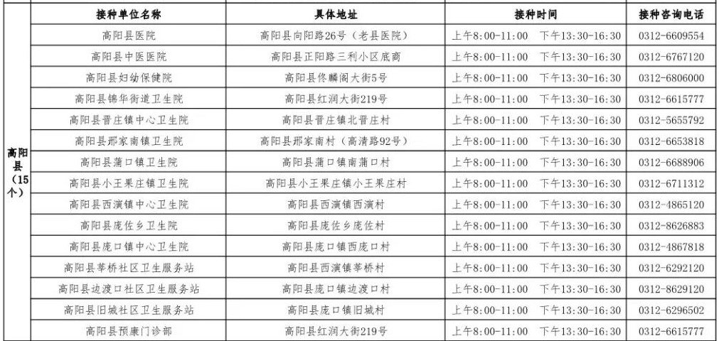 1、保定市高陽(yáng)縣醫(yī)院疫苗接種門(mén)診