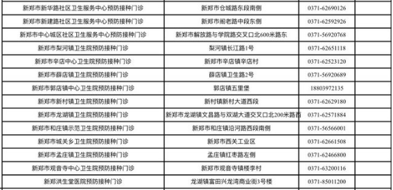 鄭州市新鄭市新冠病毒疫苗接種點信息