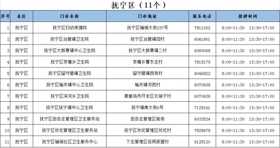 接種地址:秦皇島市撫寧區(qū)撫寧鎮(zhèn)南大街6號(hào),