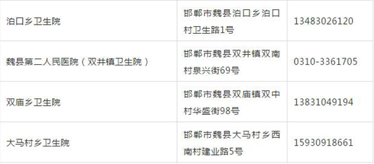 接種地址:邯鄲市魏縣天安大道120號