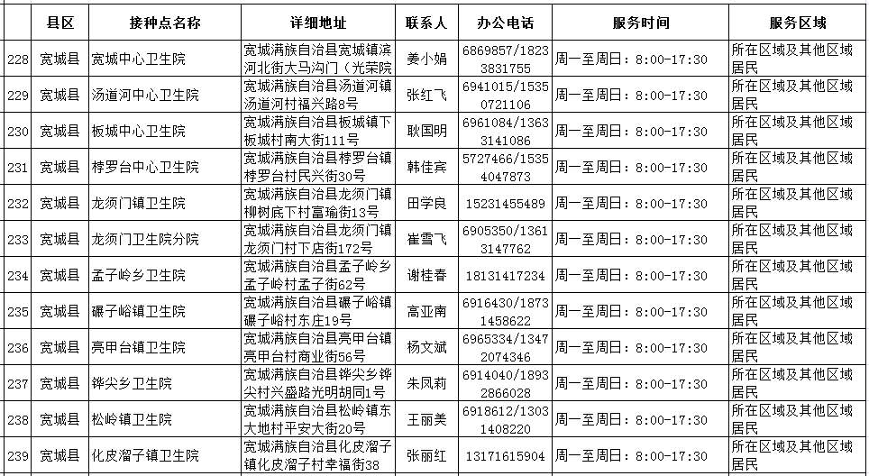 1.承德市寬城縣寬城中心衛(wèi)生院疫苗接種門診