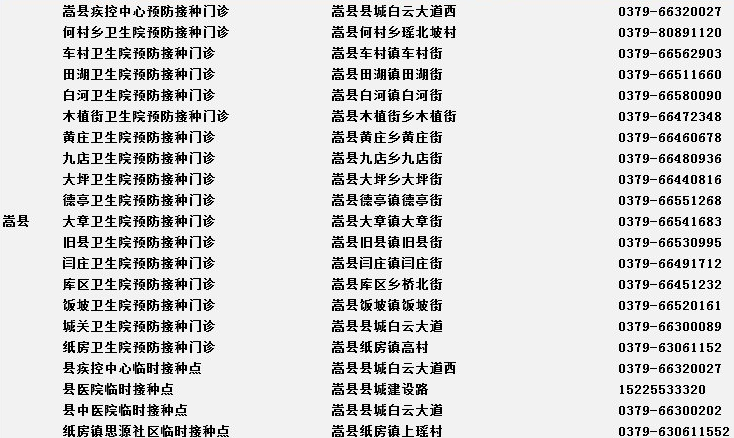 洛陽市嵩縣新冠病毒疫苗晚上接種點(diǎn)聯(lián)系信息