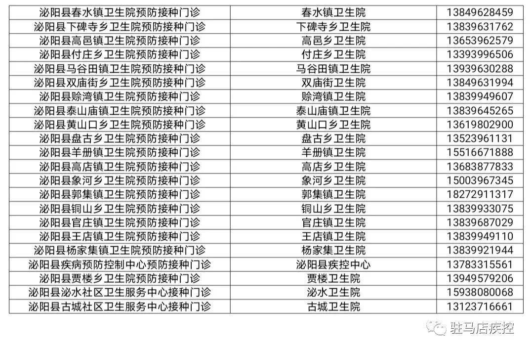 接種地址:駐馬店市泌陽(yáng)縣泰山廟街泰山廟鎮(zhèn)衛(wèi)生院 ;