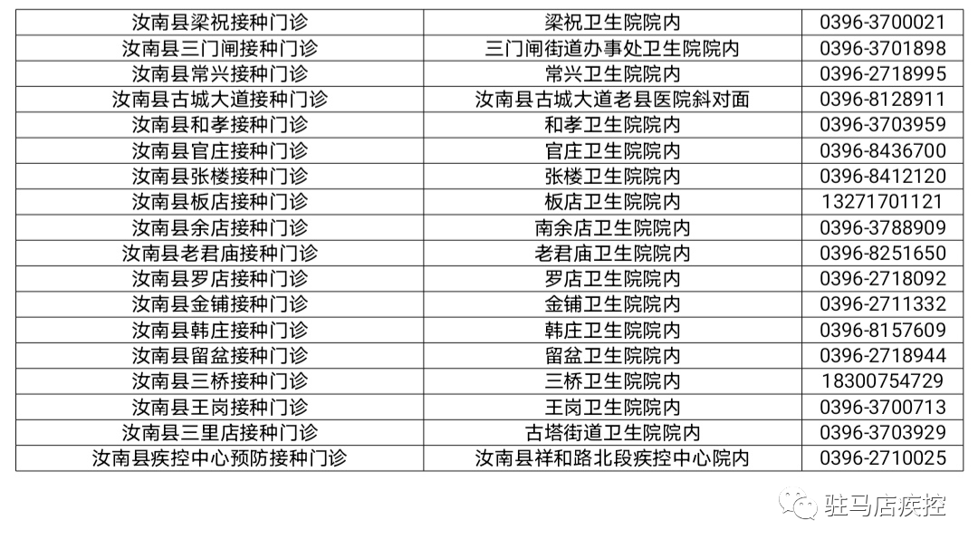 接種地址:駐馬店市汝南縣三門閘街道