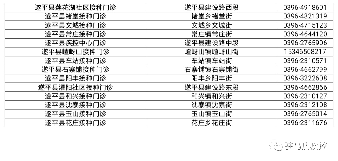 接種地址:駐馬店市遂平縣城建設(shè)路中段;