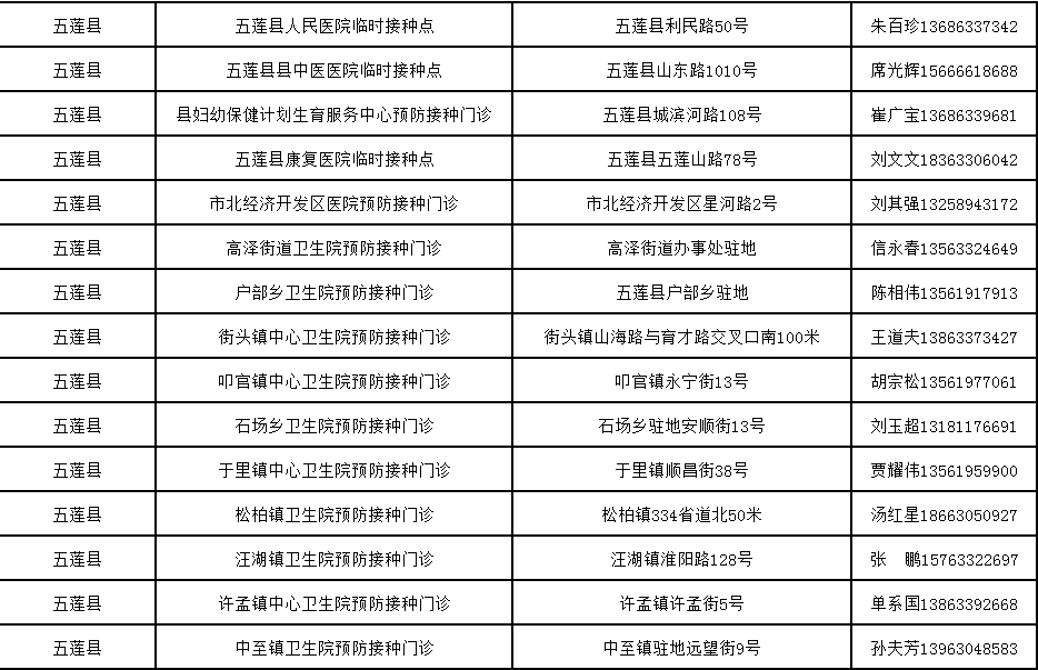 接種地點(diǎn):日照市五蓮縣胡老路3號(hào),