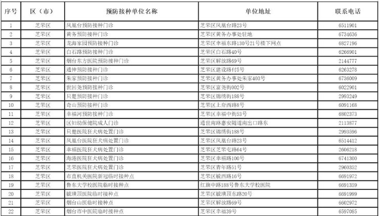 接種地點(diǎn):煙臺(tái)市芝罘區(qū)鳳凰臺(tái)路23號