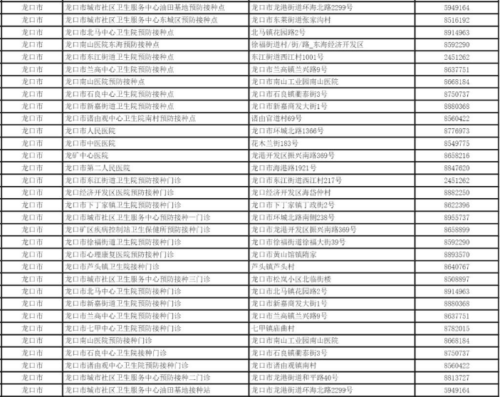 接種地點(diǎn):山東省龍口市龍港街道和平路40號(hào)