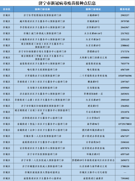 接種地點:濟寧市任城區(qū)安居街道辦事處駐地