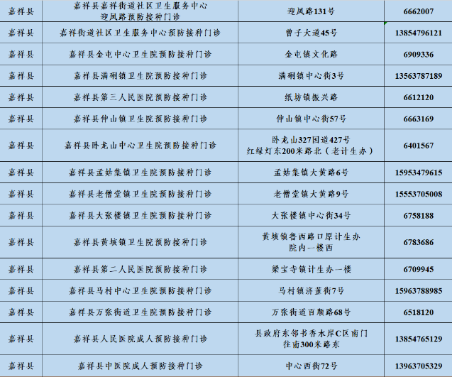 接種地點(diǎn):濟(jì)寧市嘉祥縣中心西街58號(hào)