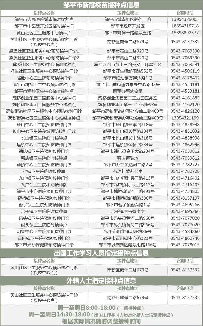 接種地點:濱州市鄒城市黛溪四路 41號