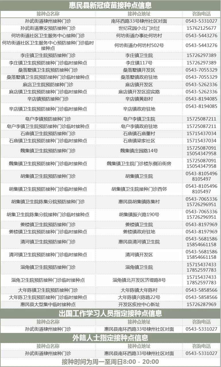 接種地點:濱州市惠民縣環(huán)城南路 108 號