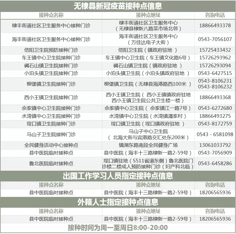 接種地點:濱州市無棣縣無棣院前街 49 號