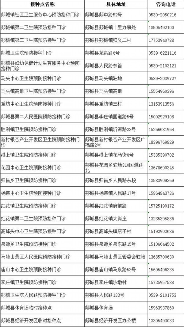 接種地點(diǎn):臨沂市郯城縣人民路133號(hào)