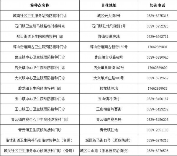 接種地點:臨沂市臨沭縣城區(qū)中山路(原縣醫(yī)院沿街樓)