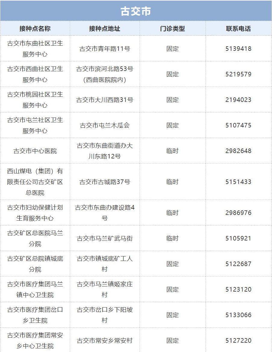 接種地點:山西省古交市東曲街道辦大川東路12號臨時
