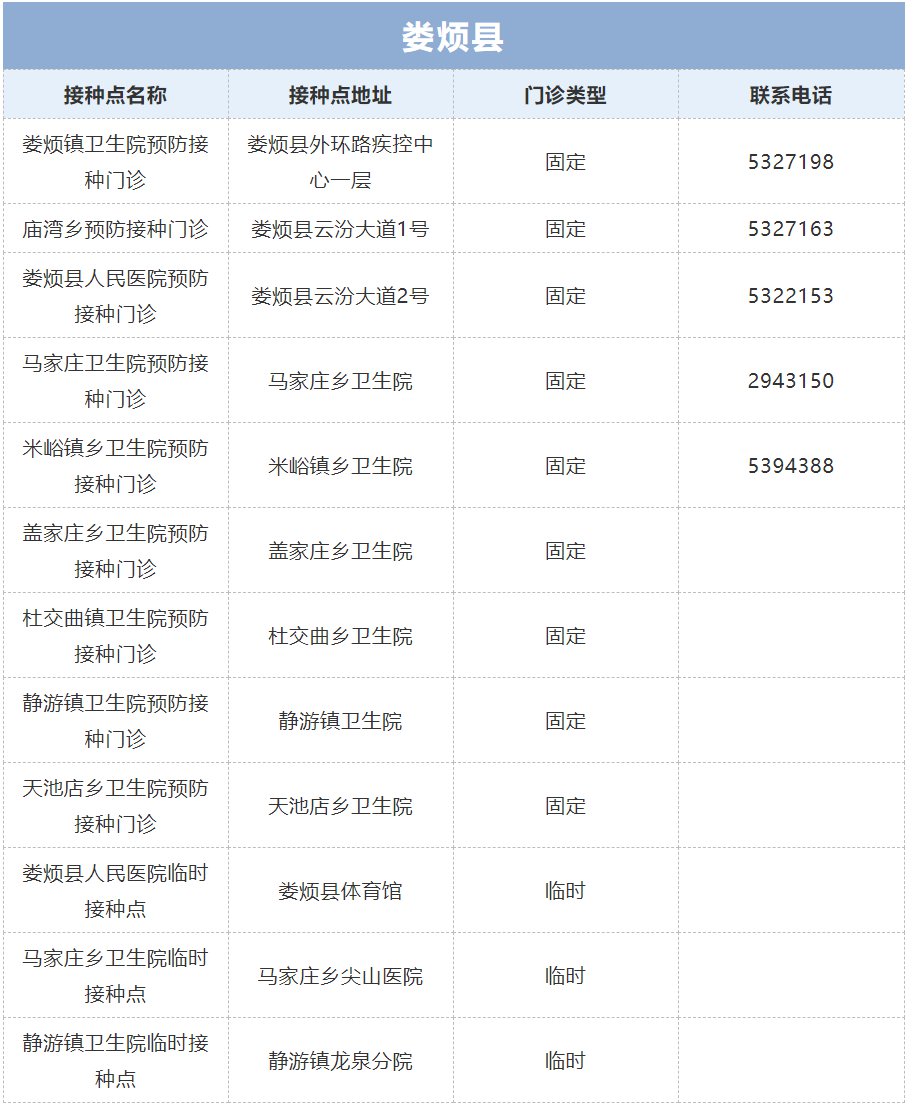 接種地點:太原市婁煩縣外環(huán)路疾控中心一層