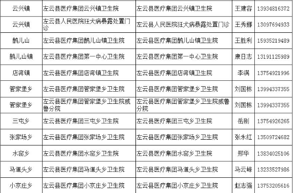 1、左云縣人民醫(yī)院狂犬病暴露處置門診