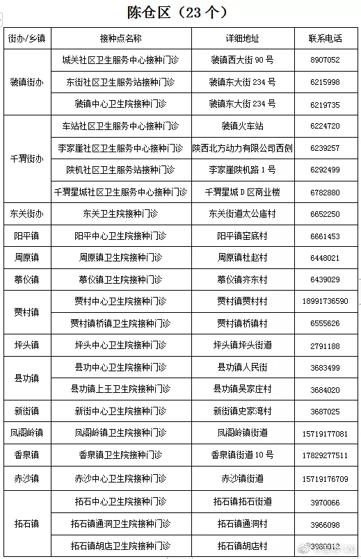 即日起,寶雞市陳倉區(qū)內(nèi)18歲以上居民(含60歲以上)不論戶籍,身體狀況符合接種要求的均需免費接種新冠病毒疫苗,請您與所在單位或社區(qū)聯(lián)系疫苗接種相關事宜。零散居民、流動人口也可攜帶身份證,就近自行前往接種點接種,接種點會根據(jù)疫苗供應情況、日接種能力、排隊順序等發(fā)放接種序號。寶雞市陳倉區(qū)居民預約接種新冠病毒疫苗單位名單、地址、接種時間和預約電話等相關信息看這里↓↓↓