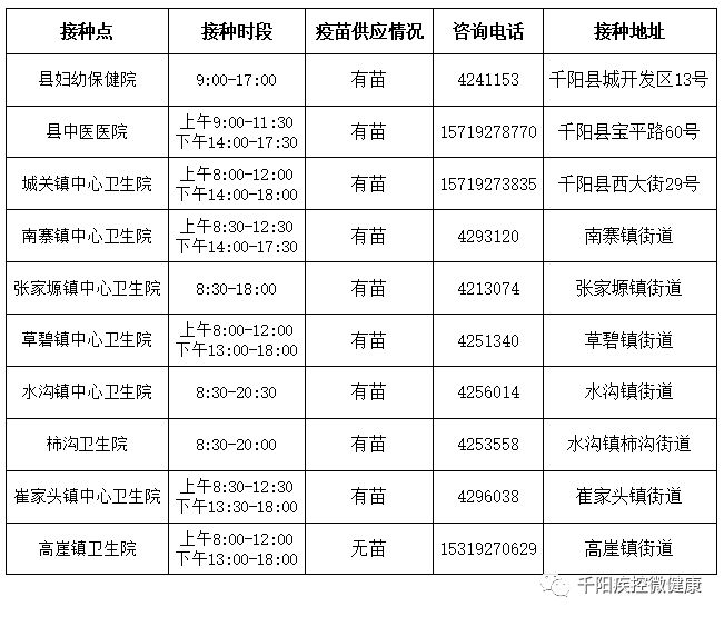 接種地點:陜西省寶雞市千陽縣西大街29號