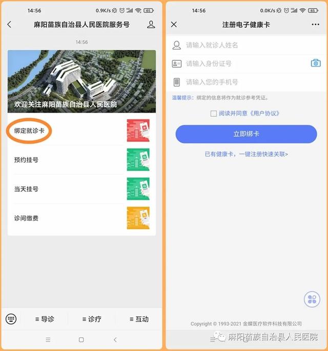 點(diǎn)擊綁定就診卡,填寫(xiě)個(gè)人信息注冊(cè)電子健康卡。