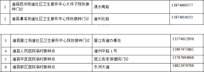 接種地點(diǎn):湖南省永州市道縣瀟水南路508號