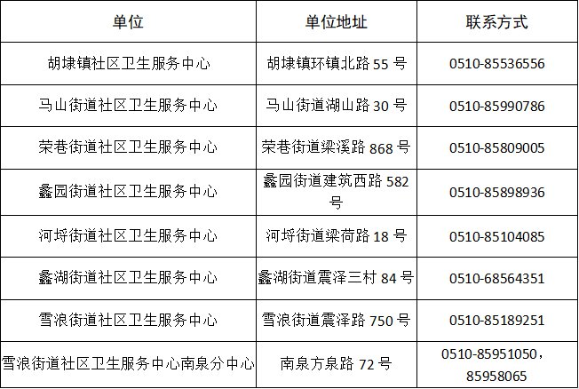 接種地址:江蘇省無錫市濱湖區(qū)梁荷路18號