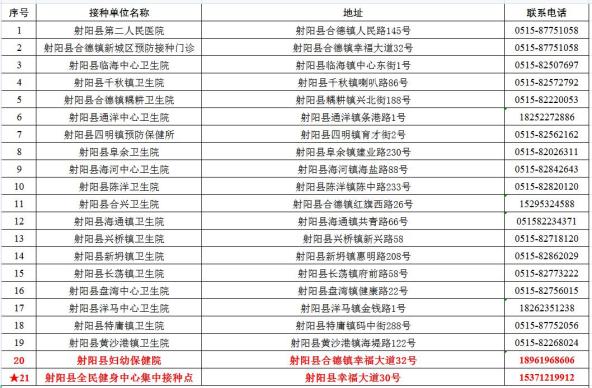 接種地點(diǎn):江蘇省鹽城市射陽縣臨海鎮(zhèn)中心東街1號