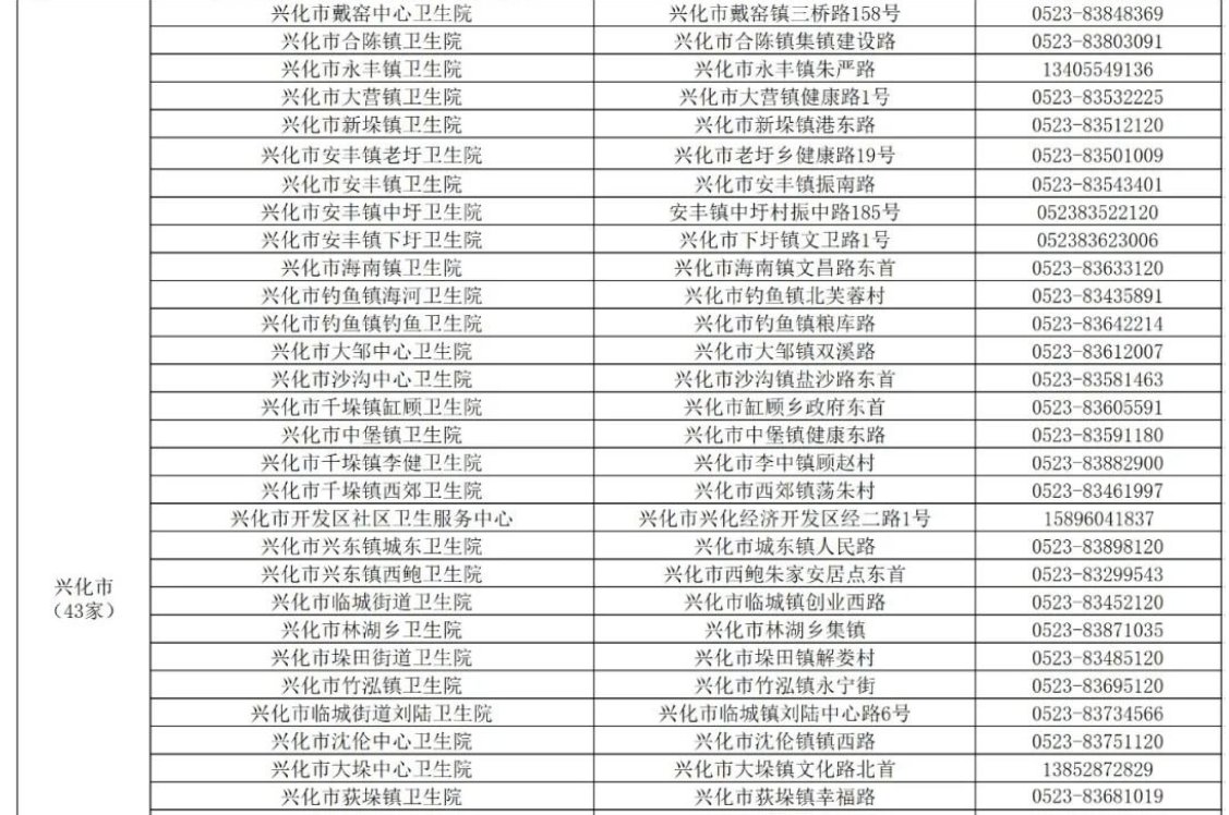 接種地點:江蘇省興化市大營鎮(zhèn)健康路1號
