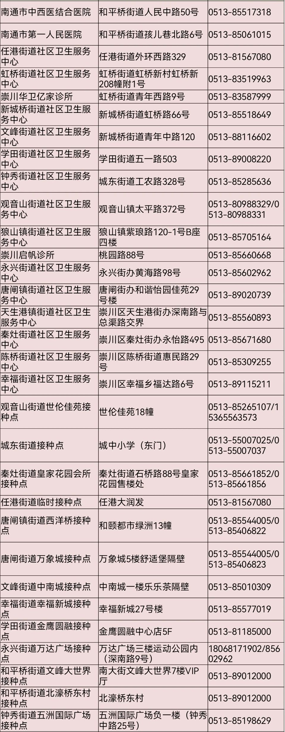 接種地址:南通市崇川區(qū)紫瑯路120號(hào)