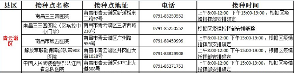 南昌市青云譜區(qū)新冠病毒疫苗接種點(diǎn)信息