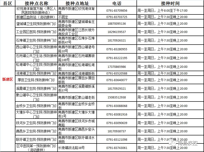 南昌市新建區(qū)新冠病毒疫苗接種點信息