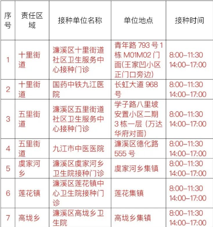 九江市濂溪區(qū)新冠病毒疫苗接種點信息